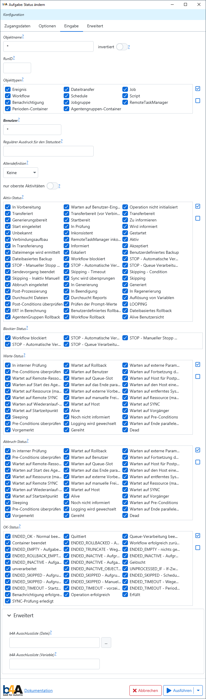 Abschließend werden die angegebenen Werte auf Basis des Parametertyps geprüft. Das Framework bringt einige vordefinierte Typen mit. Diese werden um Automic-spezifische Typen erweitert.