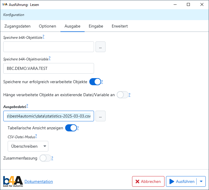 ) - Speichert die verarbeiteten Objekte in einer b4A-Objektdatei