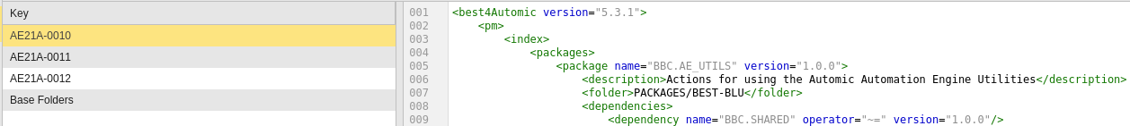 Die Action Packs des Automic Package Manager liegen unterhalb des Ordners PACKAGES. Pro Action Pack wird in diesem Verzeichnis ein Ordner angelegt. Unterhalb dieses Ordners liegen die Objekte, die Teil des Action Pack sind. Dies sind nur Teile der Definition der Automic Action Pack. Sie bilden das Grundgerüst für die Arbeitsweise dieser b4A Module. Die weiteren Strukturen unterhalb der Package-Ordner sind für diese Module nur teilweise relevant. Alles, was unterhalb eines solchen Ordners liegt, wird als Teil des Package angesehen.